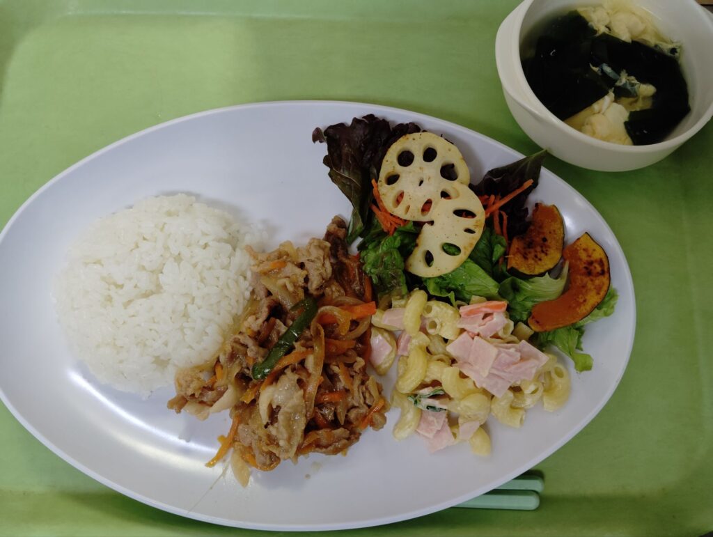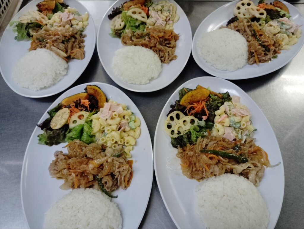 小学生向けに、メニューはプルコギ、サラダ、スープ。